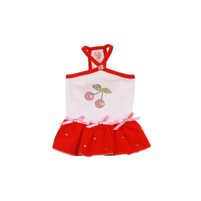 Prendisole con applicazioni in strass, fiocchetti con cristallo applicati in vita e con gonna svasata.