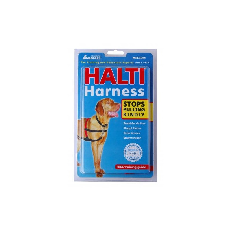 Questa pettorina è uno strumento di addestramento essenziale con un sistema di fissaggio brevettato frontale unico che permetterà ai padroni di controllare il loro cane da dove è più efficace: il petto e le spalle. Questo prodotto previene il tirare, calma cani vivaci e rende addestramento e terapia comportamentale più facile. Halti Harness dà il controllo totale sulle spalle del cane rendendo quindi dirigere il cane semplice. E 'molto efficace se usato insieme a Halti Training Lead a doppio attacco, legato sia al torace che agli anelli alle spalle della pettorina. E 'molto comodo per il cane da indossare ed è perfetto per tutte le razze grazie al suo design appositamente imbottito. Comprende una guida completa all'addestramento.