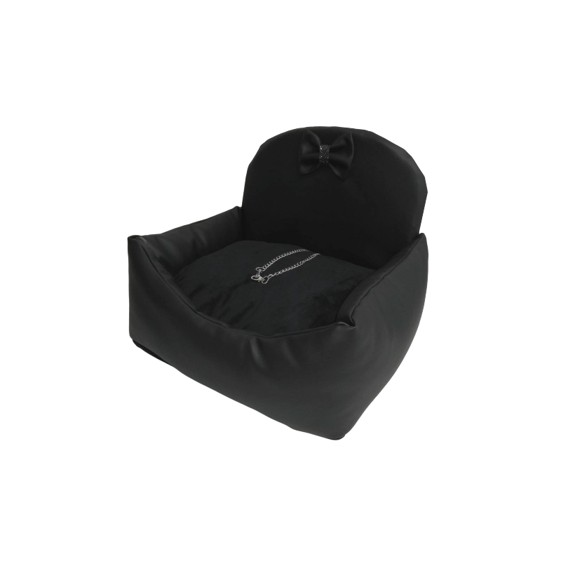 Elegantissima cuccia e trasportino per auto in ecopelle con all'interno gancio di sicurezza.