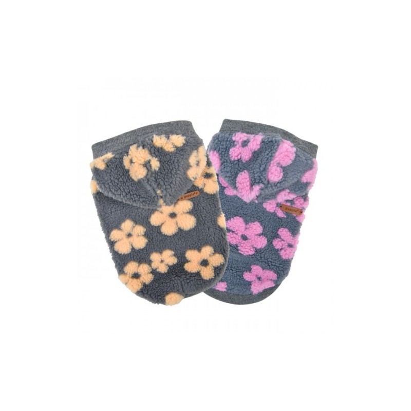 Felpa invernale con cappuccio, motivo floreale e tinta unita