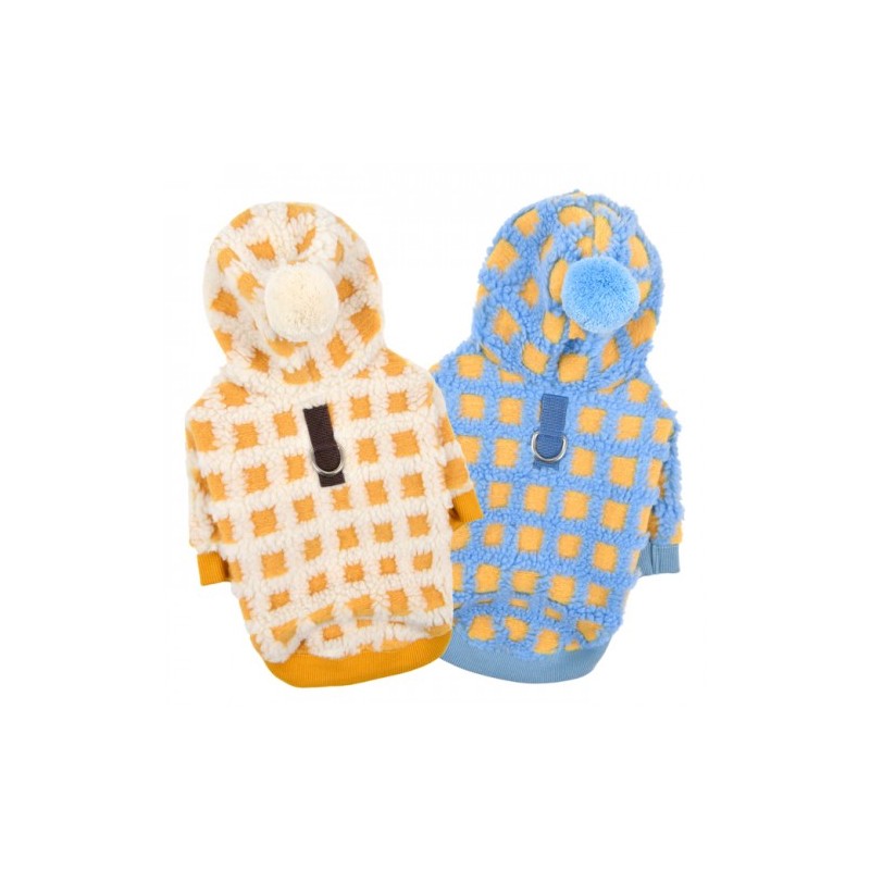 Maglietta invernale con cappuccio e pettorina integrata, motivo a rombi e tinta unita