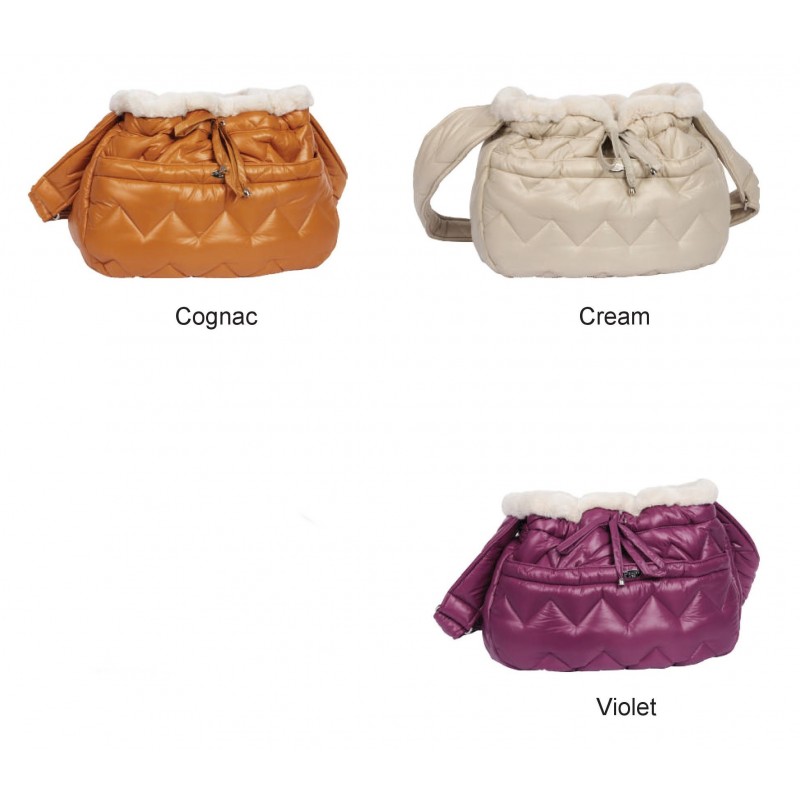 Per i più glamour, borsa trapuntata in nylon laminato e interni in calda e morbida pelliccia sintetica.