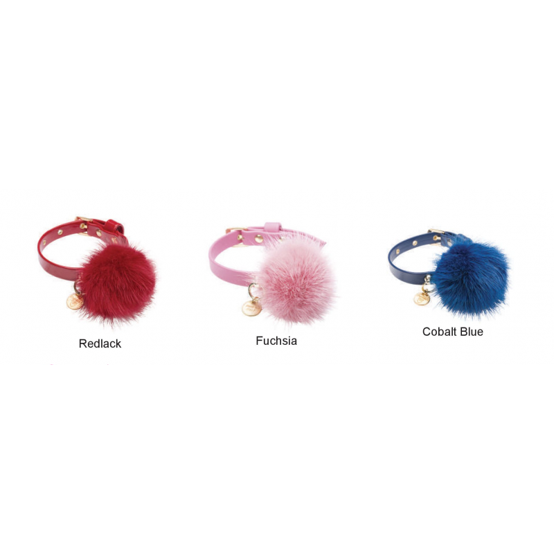 Delizioso collare impreziosito da un morbido pon pon. Tutto è rigorosamente cucito a mano.