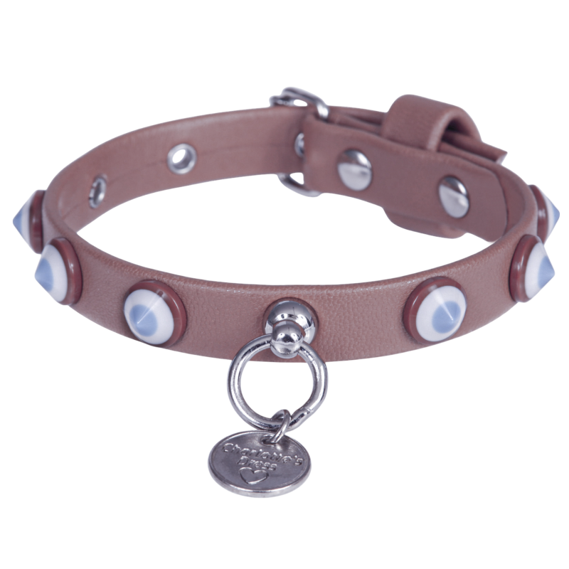 Collare in ecopelle, decorato con rivetti a punta tricolore in abs.
