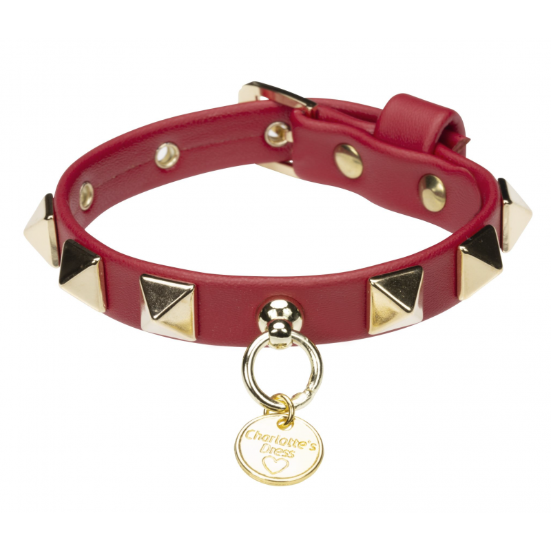Collare in morbida ecopelle, decorato con rivetti a forma di piramide.
