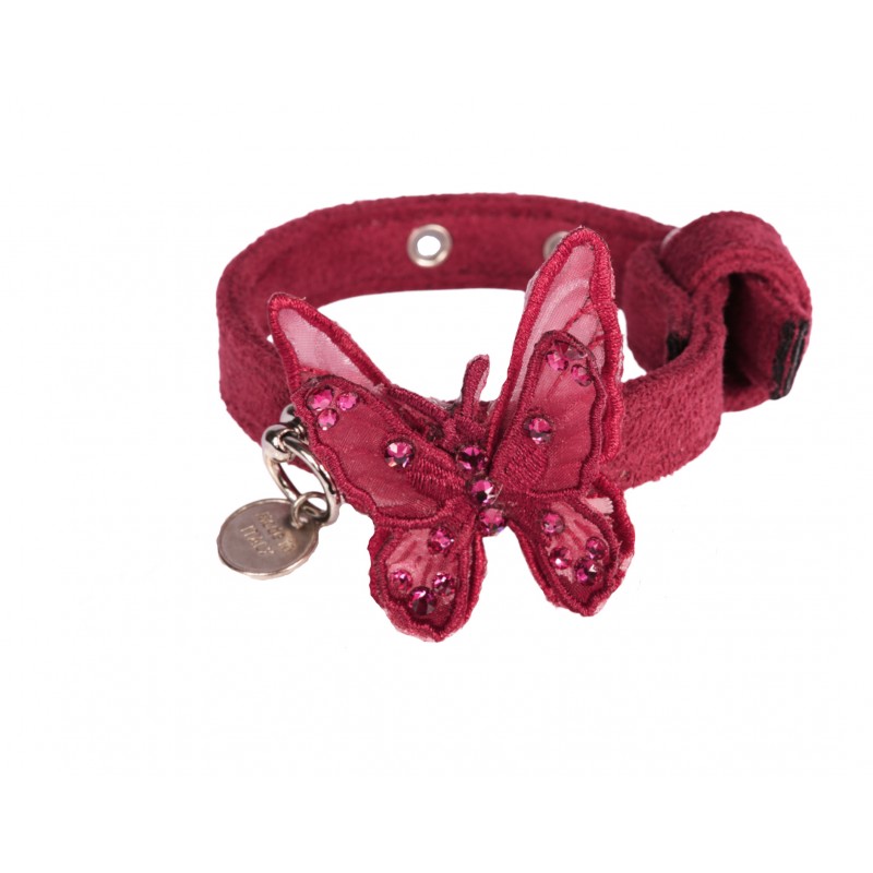 Raffinato collare in ultrasuede con splendida farfalla decorata con Swarovski e perle.
