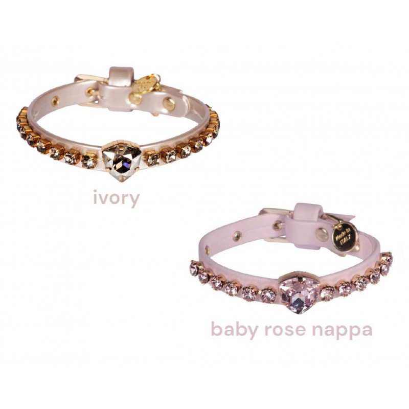 Collare scintillante, in morbida ecopelle, decorato con una splendida pietra Swarovski fancy a forma di diamante e una catena Swarovski. L'articolo è interamente cucito a mano.