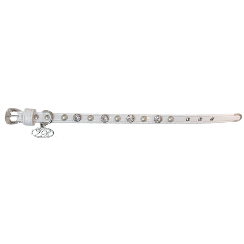 Collare Trilly tutti Brilli in ecopelle con rivetti perla e strass