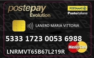 Per chi avesse scelto questa tipologia di pagamento è consigliato inviare un'email a info@codeallamoda.com dopo aver ricaricato la carta sopra indicata, evitando così ritardi nell'elaborazione degli ordini.