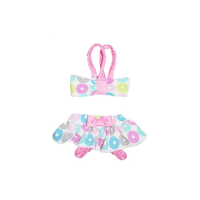 Costume da bagno rosa a stampa retro ha spalline elastiche e chiusura a velcro con i dettagli di nastrini nella parte inferiore. Realizzato in 95% poliestere, 5% elastan.!
