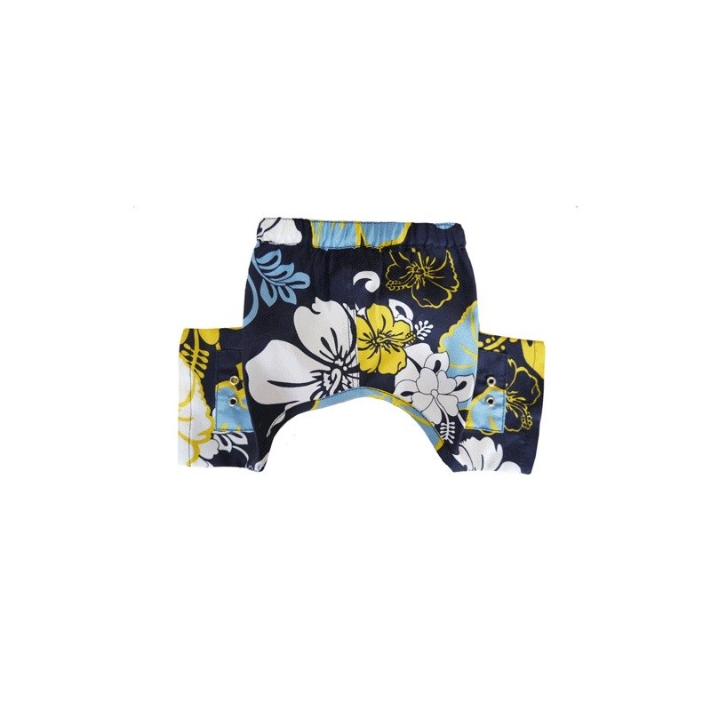 Costume da bagno blu funky ha tasche e dettagli in gommino con elastico in vita e chiusura con velcro. Realizzato in 50% cotone e 50% poliestere.