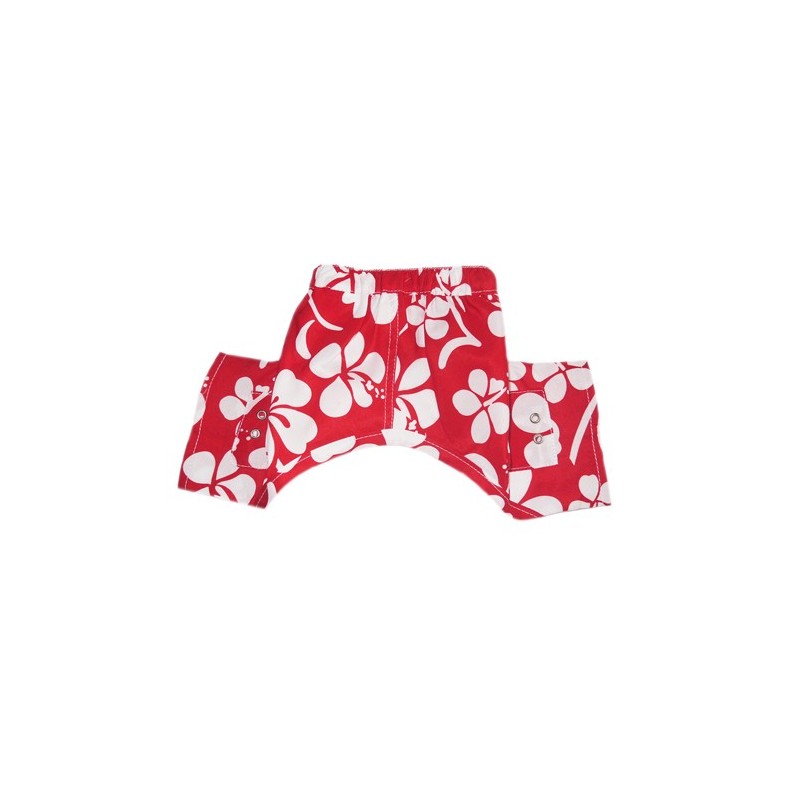 Costume da bagno rosso ha tasche e dettagli in gommino con elastico in vita e chiusura con velcro. Realizzato in 50% cotone e 50% poliestere.