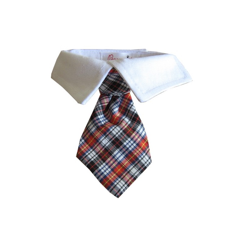 Elegante collare divertente ha una bellissima cravatta rossa a scacchi staccabile e velcro di chiusura. Realizzato in100% cotone. Ideale per occasioni speciali, e per la moda e il divertimento di tutti i giorni.