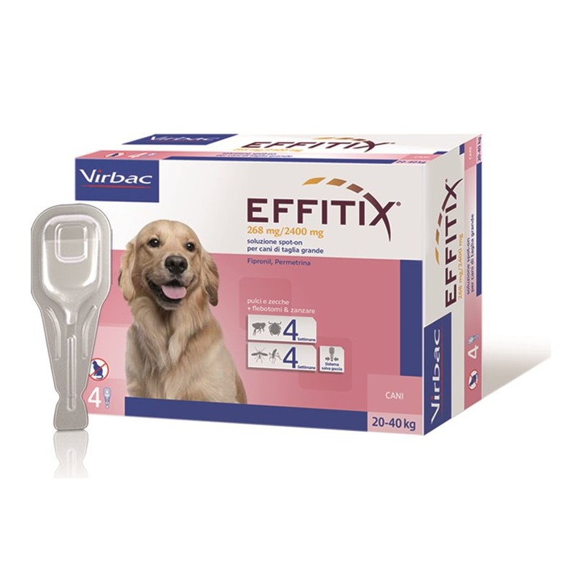 Antiparassitario esterno per soli cani. Attivo per 4 settimane contro i 4 principali parassiti (Flebotomi, Zanzare, Zecche e Pulci)