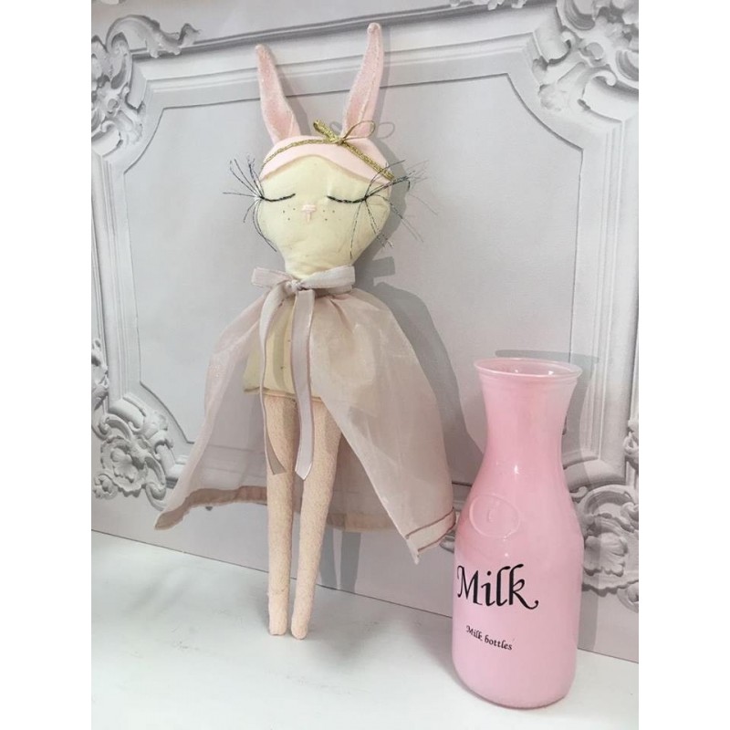 Bambola 100% in cotone organico, tulle glitterato, pizzo e lunghe ciglia.