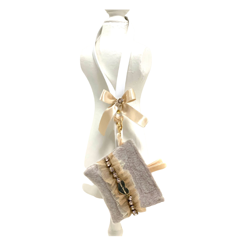 Portasacchettini in tessuto con catena di Swarovski