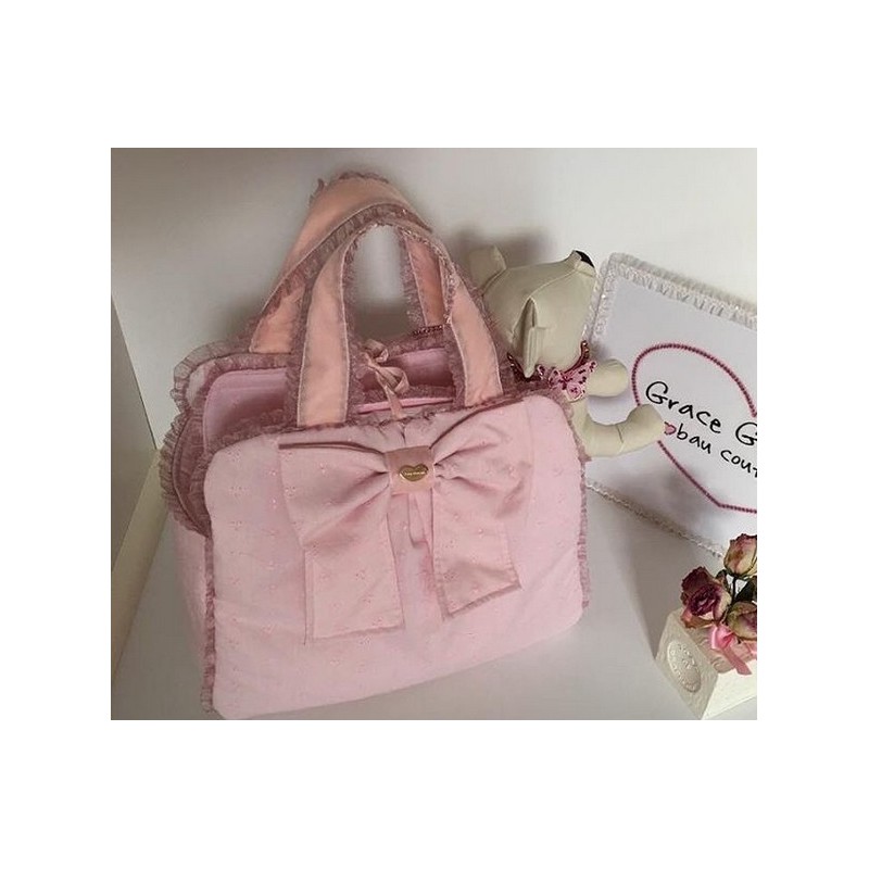 Meravigliosa ed elegante borsa in pizzo san gallo rosa 4 stagioni, manici a mano, interno in pizzo san gallo in tinta imbottito e trapuntato completamente rimovibile e sostituibile, cuscinetto sfoderabile e gancio di sicurezza.