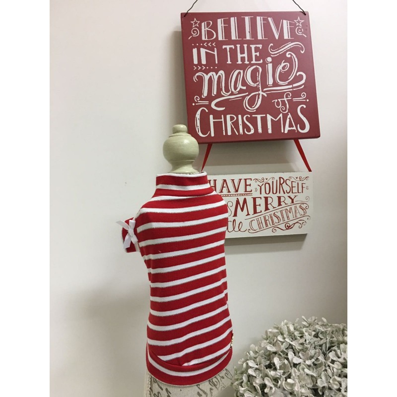 Pigiamino a righe rosse, bianche lurex argento con fiocchetti in raso bianco .... ottimo per aspettare Babbo Natale e i suoi doni...