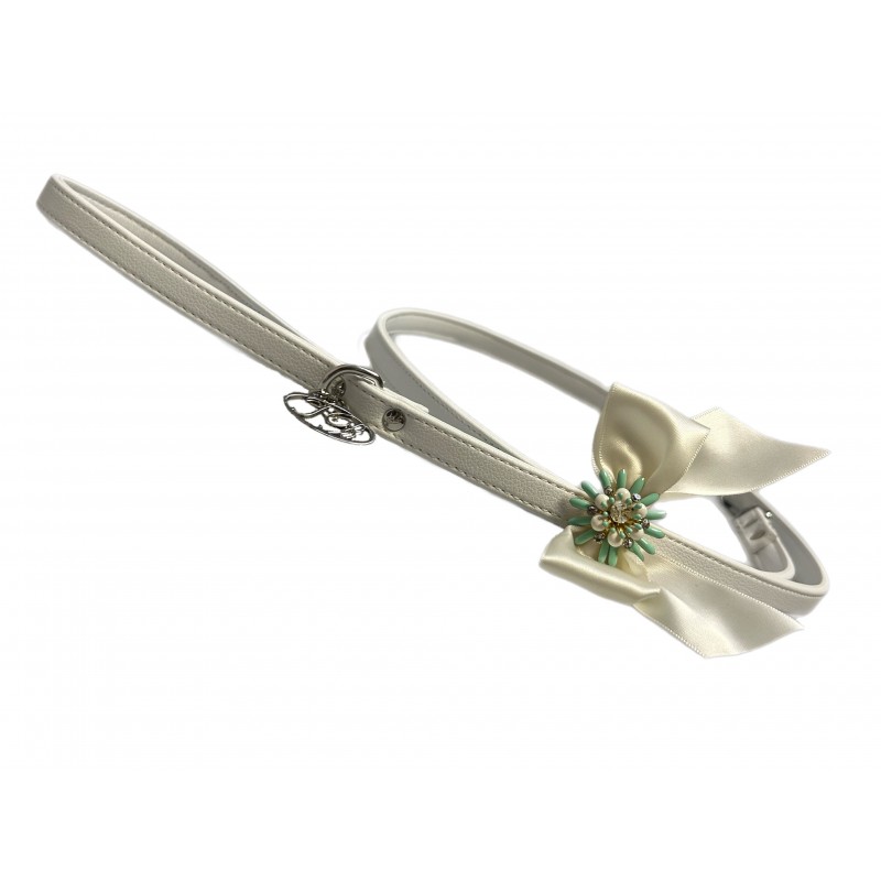 Guinzaglio in ecopelle con fiocco e cuore strass