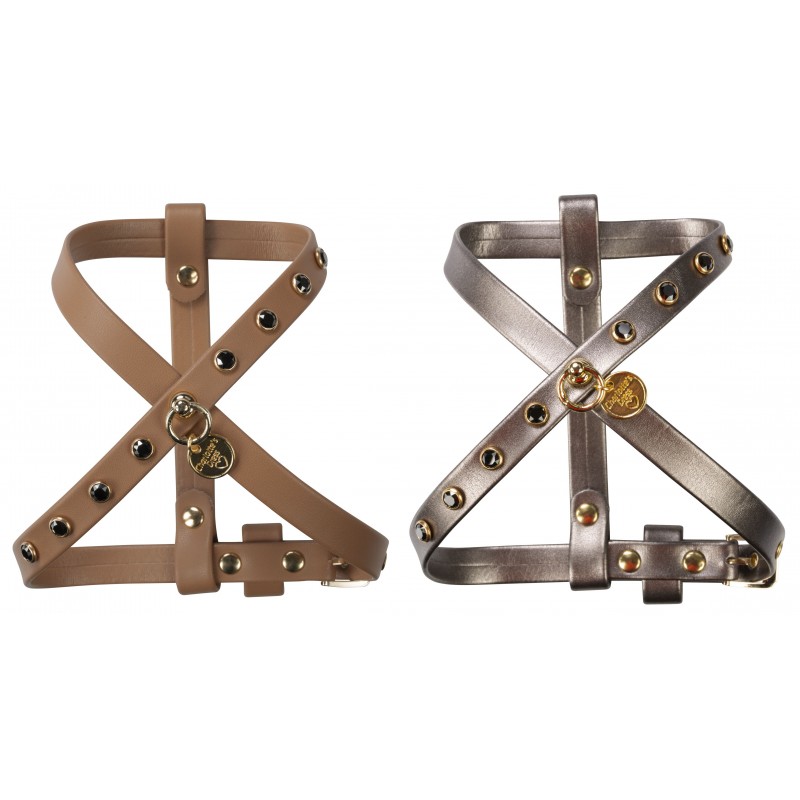 Pettorina in morbida ecopelle, decorata con rivetti Swarovski.