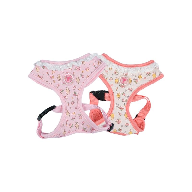 Pettorina modello A sicura e alla moda, motivo floreale con coniglietti, cintura pettorale regolabile con fibbia