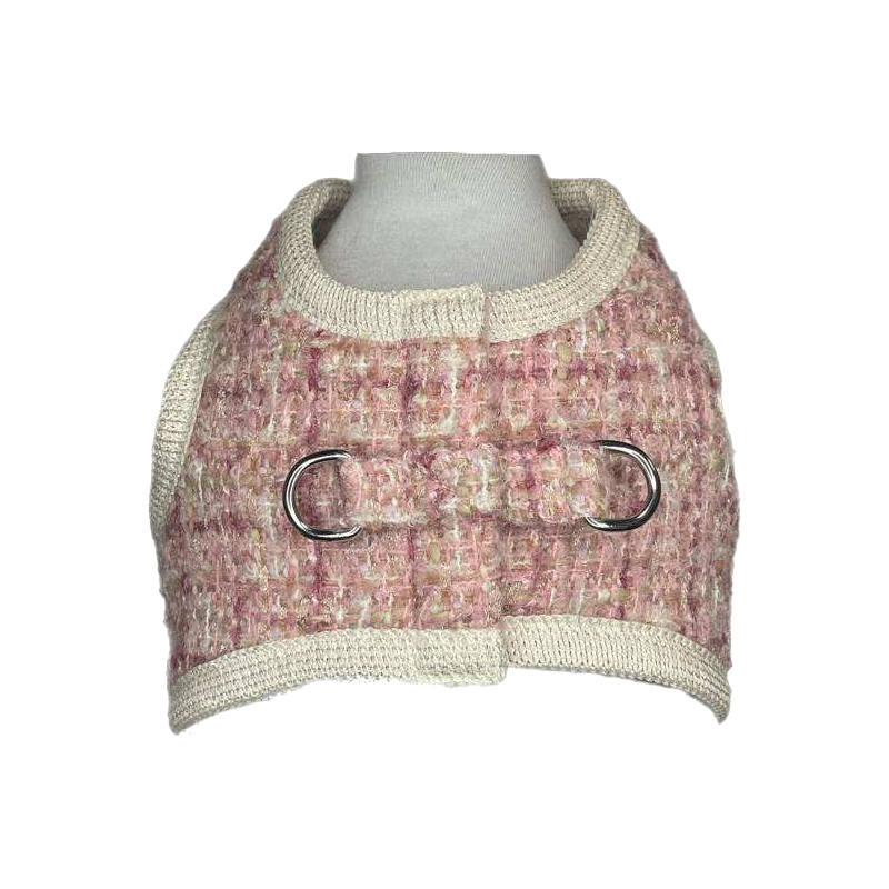 Un capo sofisticato e dal gusto ricercato, questa pettorina cropped in tweed incarna l’equilibrio perfetto tra classicismo e modernità. Realizzata in un tweed testurizzato dalle delicate sfumature di rosa cipria, beige e bianco, si distingue per la sua allure bon ton e la cura sartoriale dei dettagli. Il bordo in maglia spessa color crema incornicia il capo con un tocco di morbida struttura, mentre i due D-ring argentati sul davanti aggiungono un accento contemporaneo e audace, fondendo estetica e funzionalità. Ideale per completare un look sofisticato, questa pettorina si presta a essere indossata sopra camicie, abiti minimal o top in seta, regalando un twist couture a qualsiasi outfit.