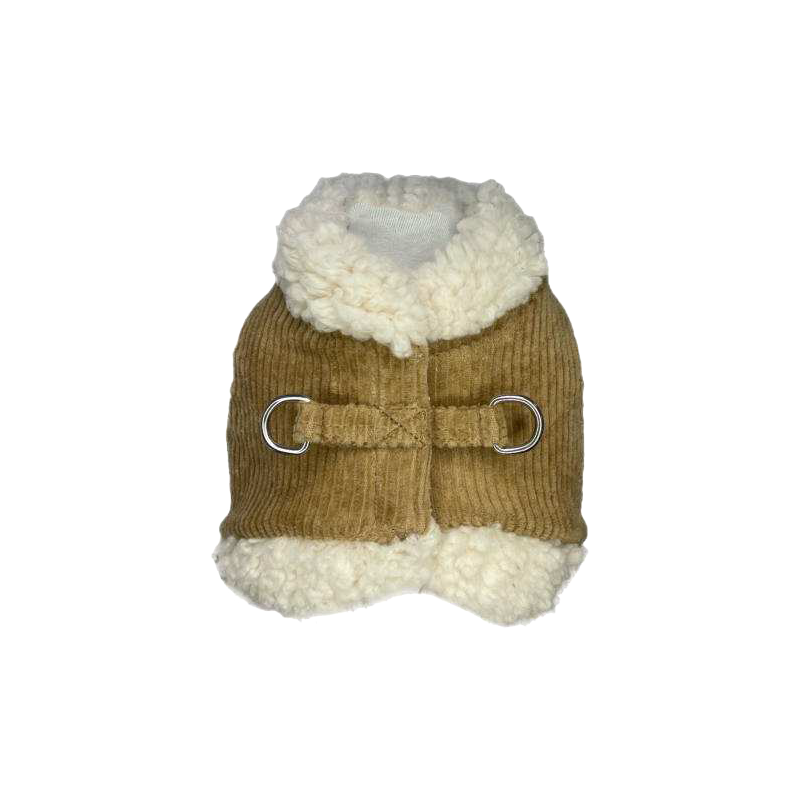 Pettorina a gilet in velluto e calda e morbida pelliccetta sherpa.