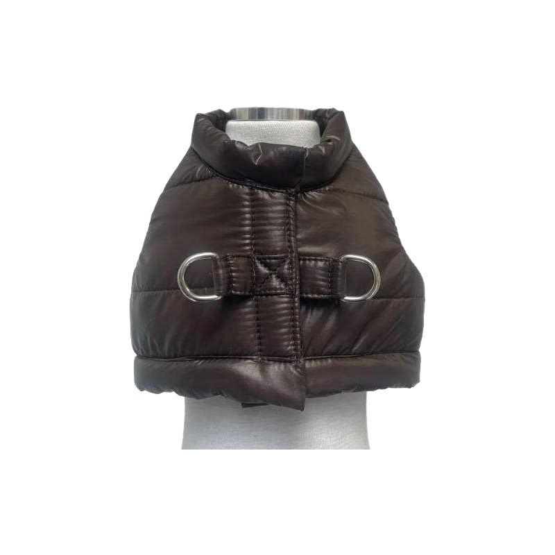 Pettorina a gilet in piumino e tessuto mesh, con due anelli a D sul dorso per l'aggancio del guinzaglio in tutta sicurezza