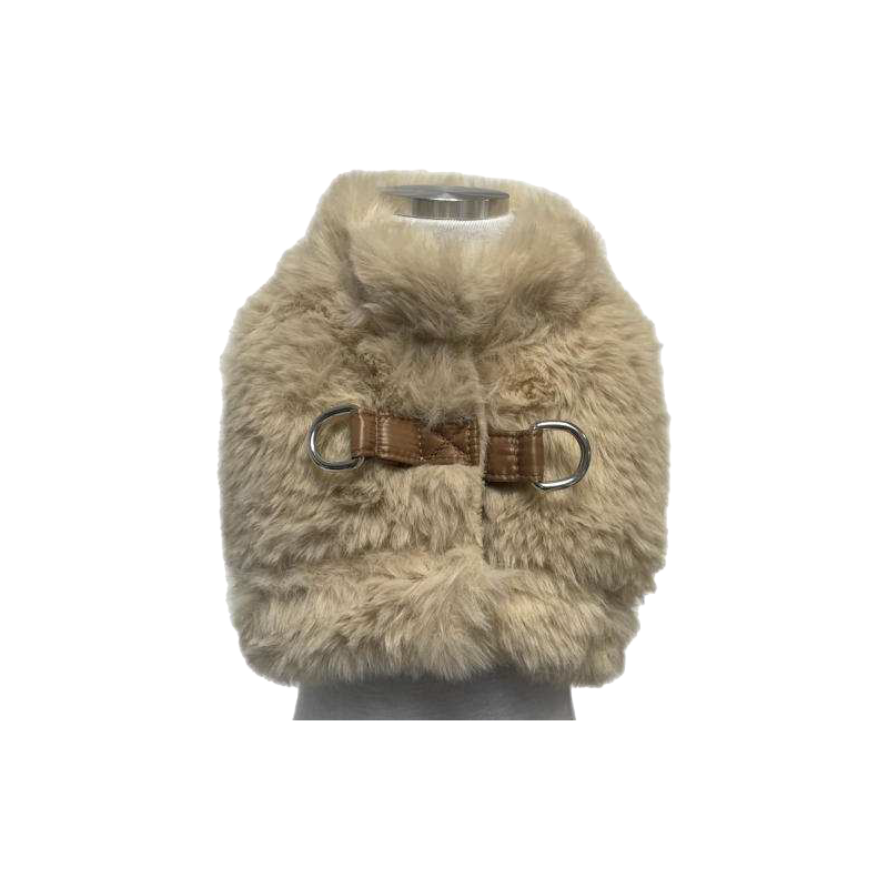 Pettorina a gilet in ecopellicia e trapunta impermeabile, con due anelli a D sul dorso per l'aggancio del guinzaglio in tutta sicurezza