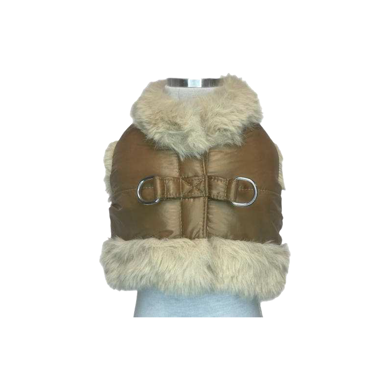 Pettorina a gilet in piumino e morbida pelliccetta.