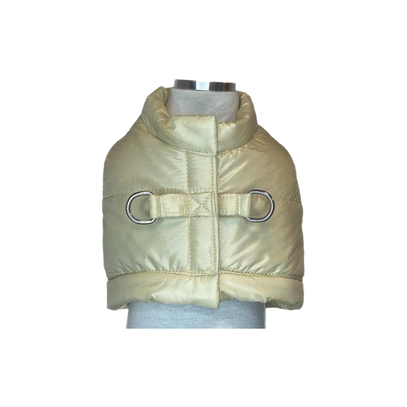 Pettorina a gilet in piumino e tessuto mesh, con due anelli a D sul dorso per l'aggancio del guinzaglio in tutta sicurezza