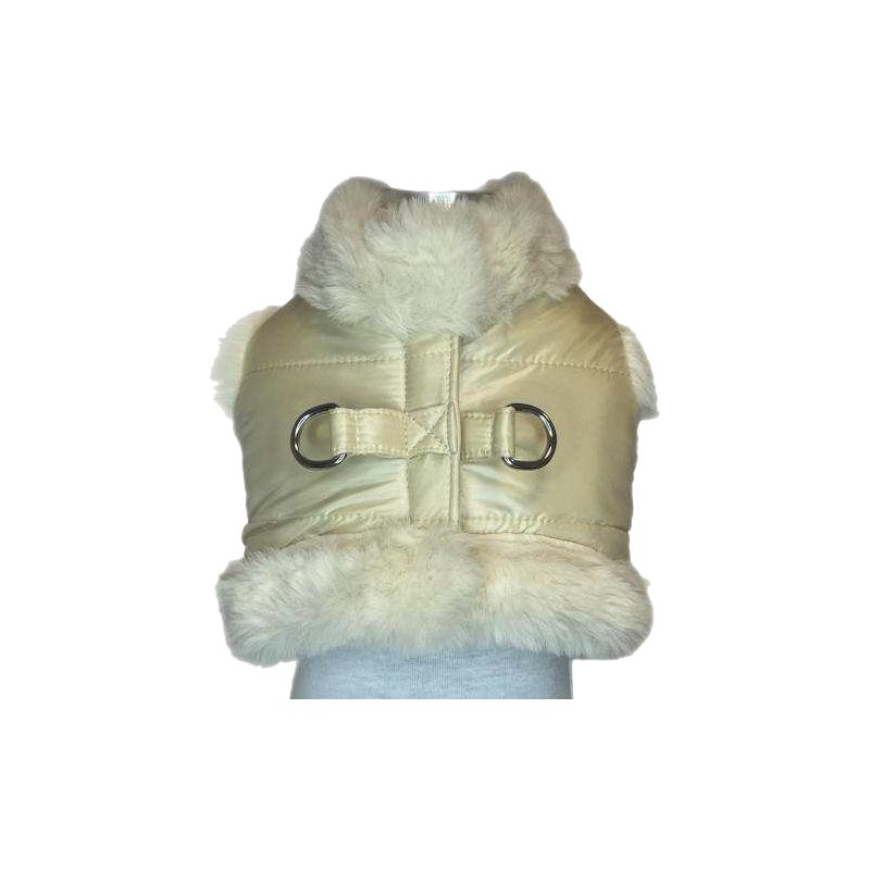 Pettorina a gilet in piumino e morbida pelliccetta.