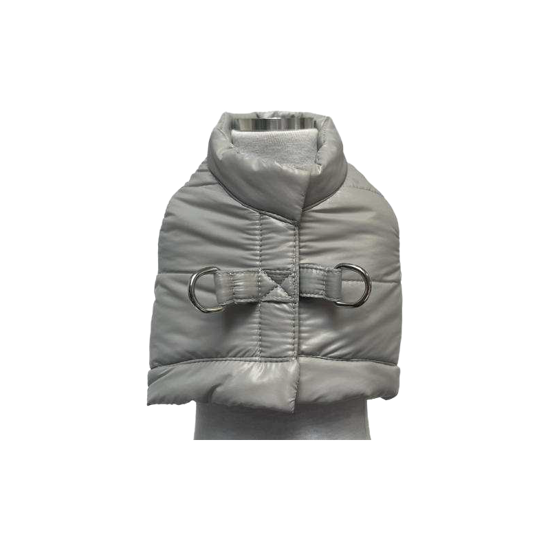 Pettorina a gilet in piumino e tessuto mesh, con due anelli a D sul dorso per l'aggancio del guinzaglio in tutta sicurezza