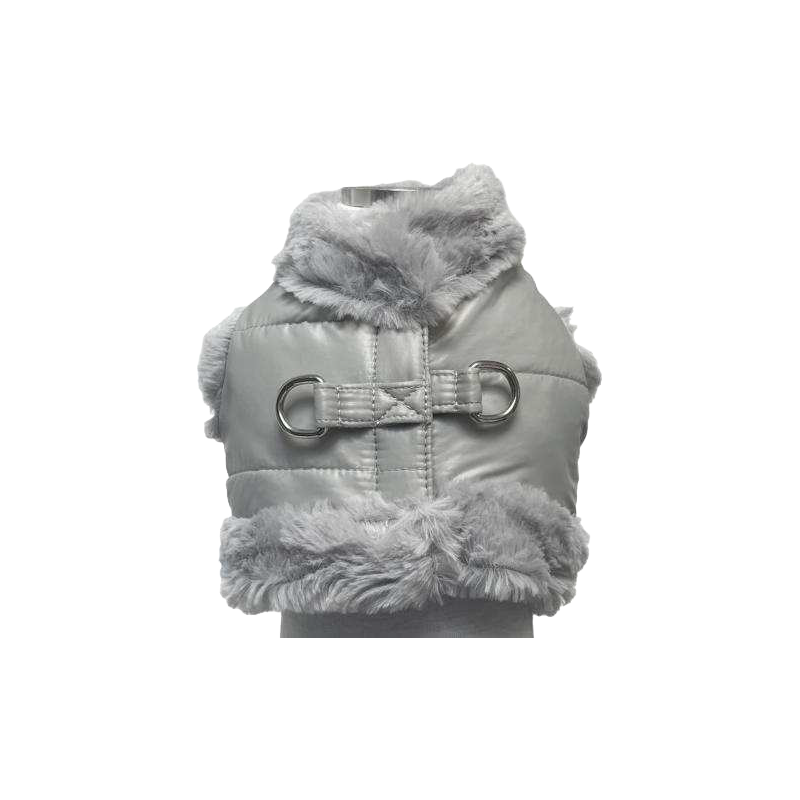Pettorina a gilet in piumino e morbida pelliccetta.
