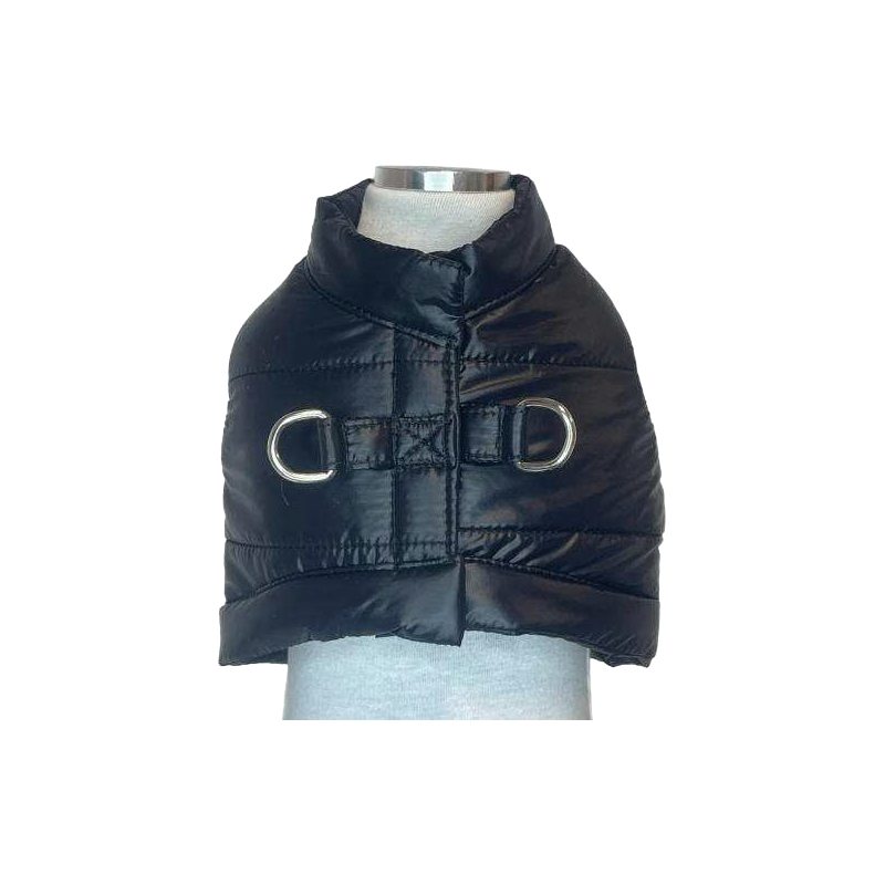 Pettorina a gilet in piumino e tessuto mesh, con due anelli a D sul dorso per l'aggancio del guinzaglio in tutta sicurezza