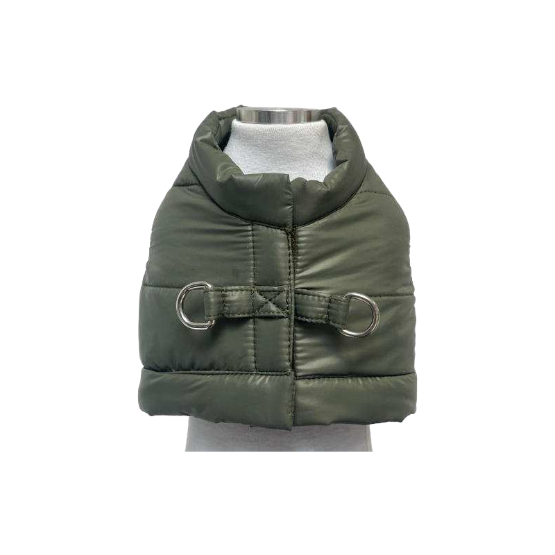 Pettorina a gilet in piumino e tessuto mesh, con due anelli a D sul dorso per l'aggancio del guinzaglio in tutta sicurezza