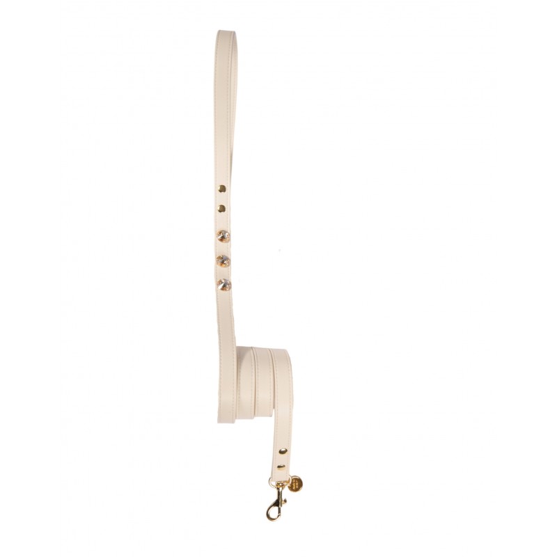 Splendido guinzaglio in morbida ecopelle, impreziosito da favolose pietre in cristalli Swarovski color beige.