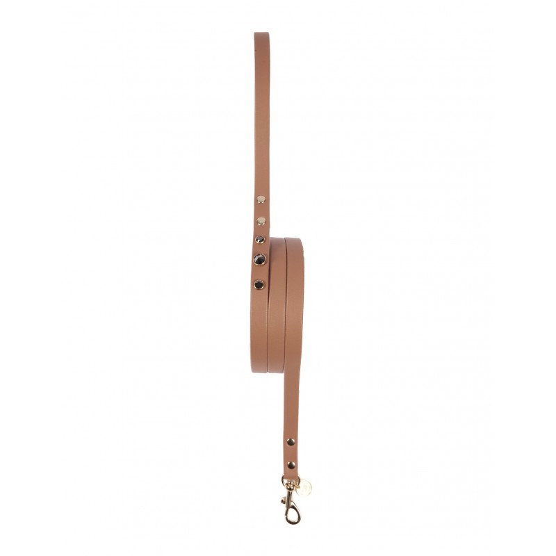 Guinzaglio in ecopelle, decorato con borchie Swarovski in forme alternate. Colore: cammello.