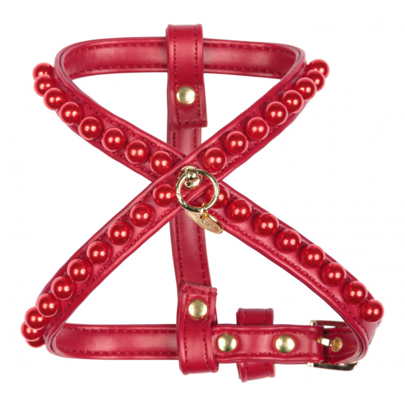 Splendida pettorina in morbida ecopelle, decorata con perle.