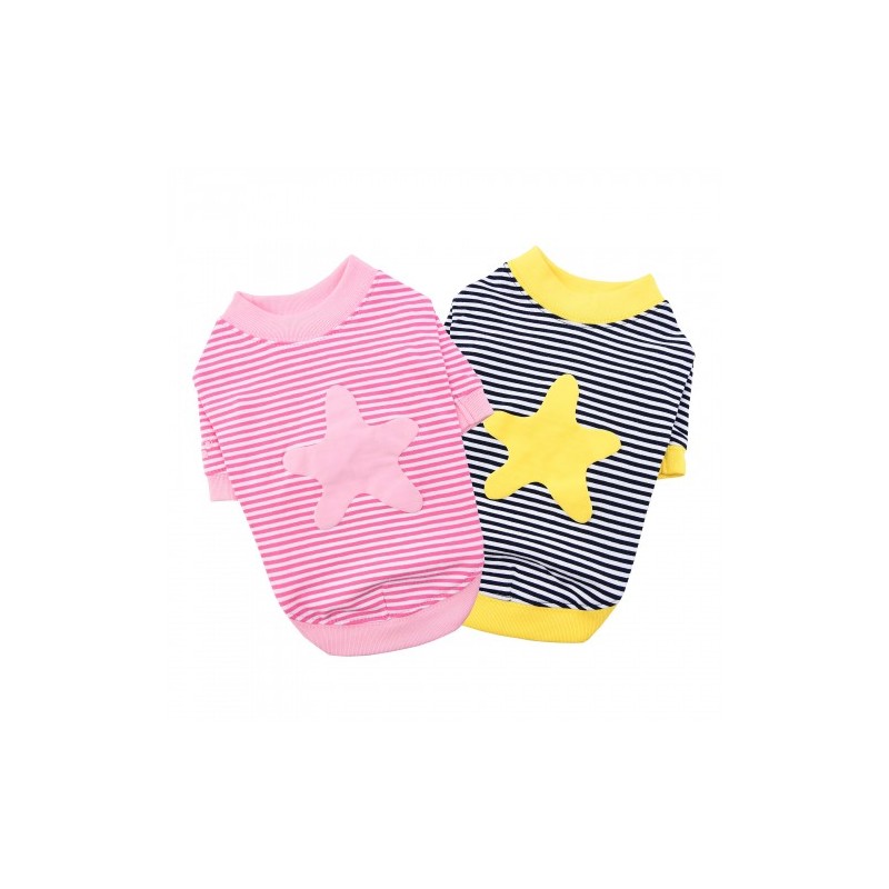 Maglietta con motivo a righe e tinta unita, decorato con stampa stella marina sul dorso, con collo, maniche e bordo a coste e targhetta SMART