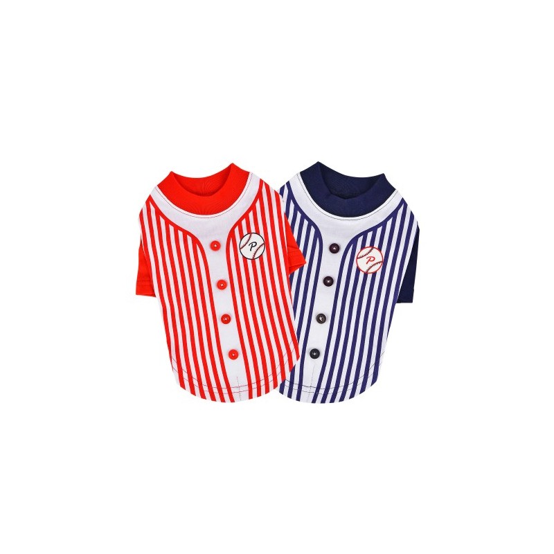Maglietta stile baseball, motivo a righe, decorata con stampa baseball e bottoni sul dorso.