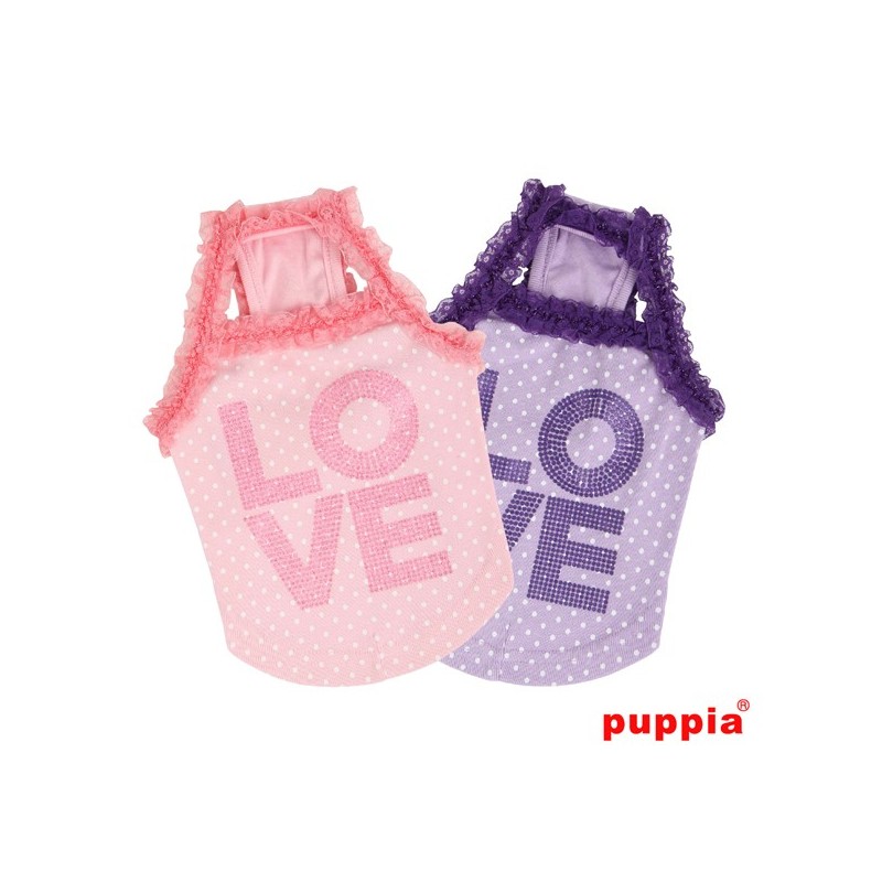 Canotta con scritta "LOVE" sul dorsoo. Colletto e maniche bordate di pizzo.