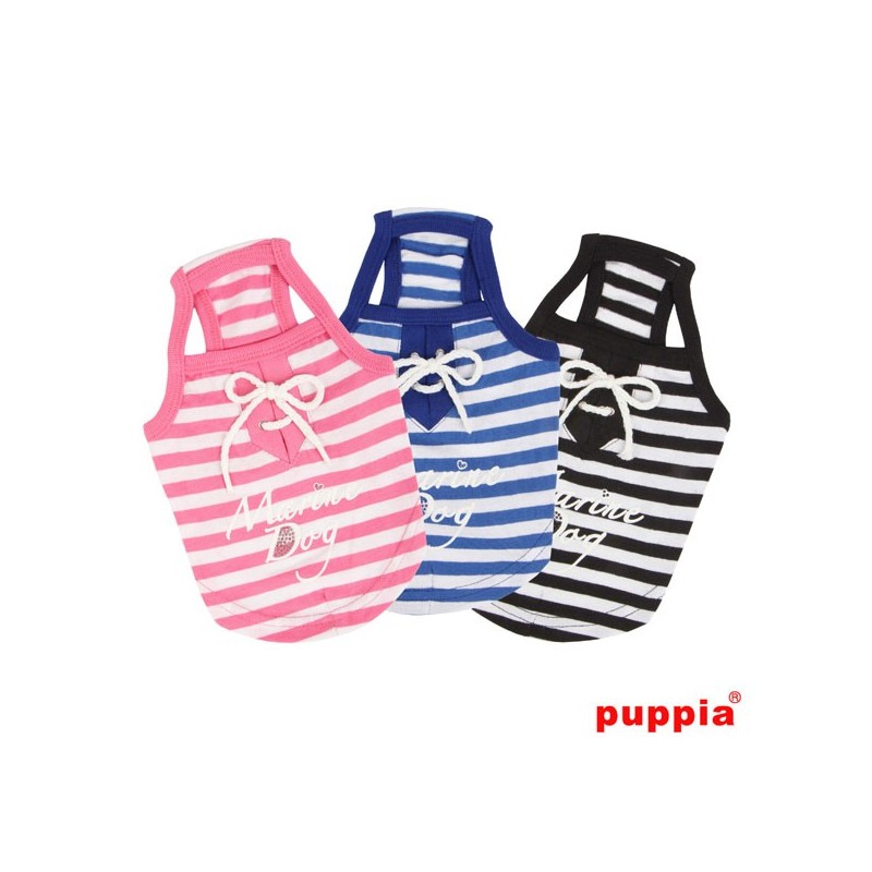 Canotta in cotone naturale con scritta Marine Dog e applicazione di borchie.