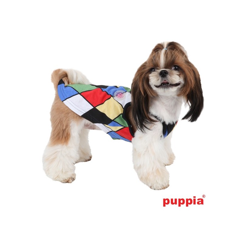 Canotta a rombi multicolori, 100% cotone, decorata dal logo in gomma Puppia sul retro.