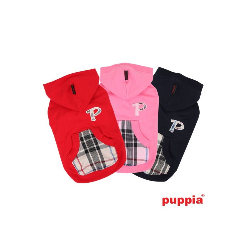 Realizzata in cotone 100% / 50% Cotone, 50% Poliestere, ha trama in tinta unita e a scacchi. E 'decorato con Puppia "P" applique sul retro ed è disponibile in tre colori alla moda. Ha un foro sul retro per collegare un guinzaglio.