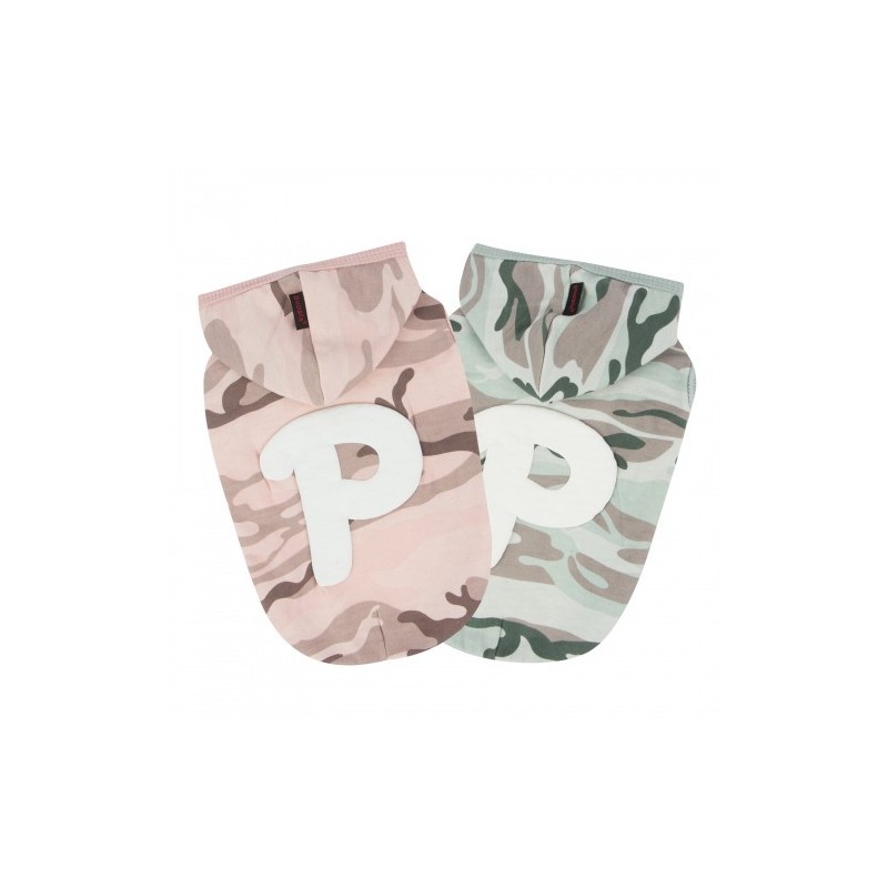 Maglietta in cotone 100% con cappuccio e foro per l'aggancio del guinzaglio.