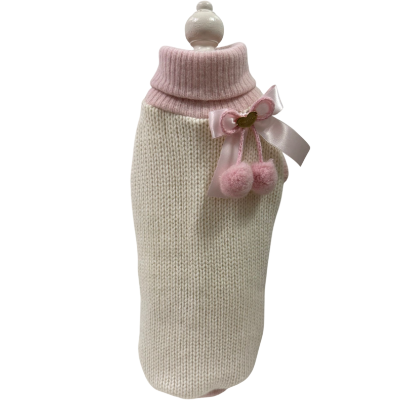 Caldo e coccoloso maglioncino con pom pom sul colletto.