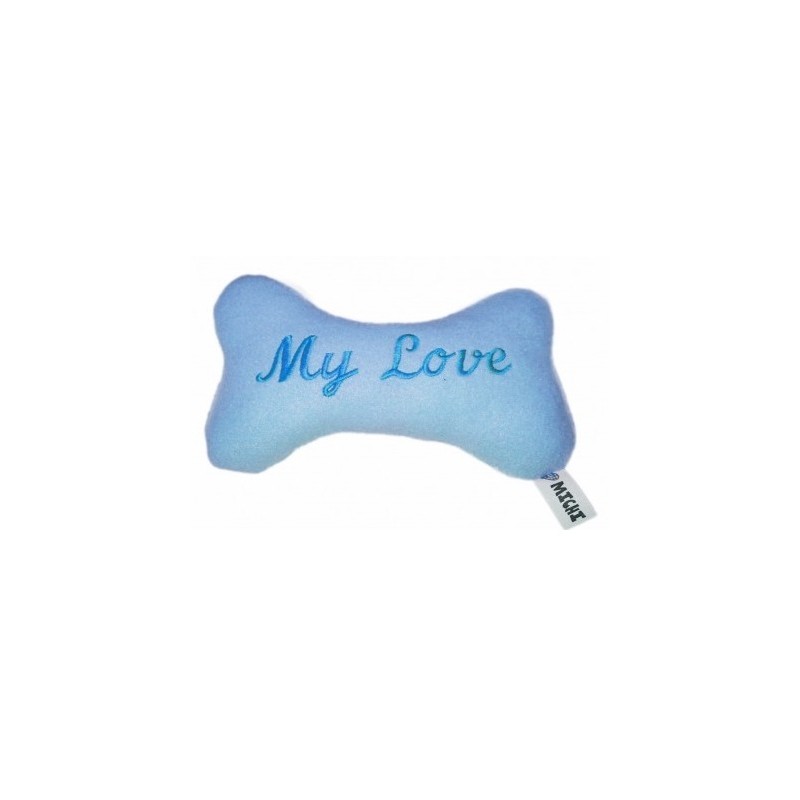 Simpatico gioco a forma di osso con squeaker e ricamo "My Love" 100% made in Italy