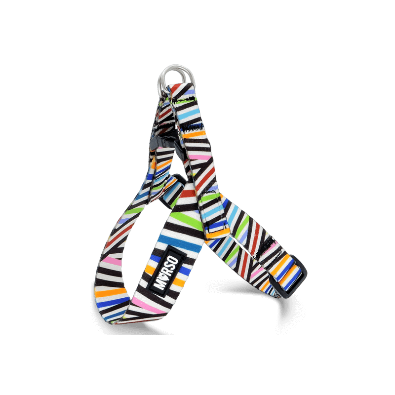 La pettorina mini MORSO® per cani di piccola taglia della linea SPAGHETTI INCIDENT è interamente realizzata con l’innovativo raso di poliestere INTENSE™ post consumer: morbido, resistente, lavabile in lavatrice a 40° e