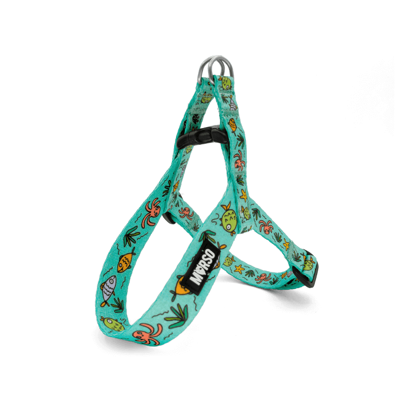 La pettorina mini MORSO® per cani di piccola taglia della linea OCEAN TREK è interamente realizzata con l’innovativo raso di poliestere INTENSE™ post consumer: morbido, resistente, lavabile in lavatrice a 40° e derivato da bottiglie in PET, 100% riciclato e riciclabile.